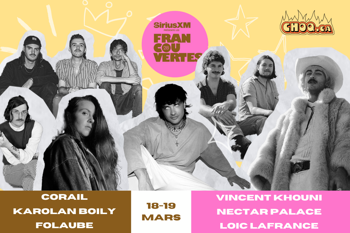 Ça repart pour une nouvelle semaine de préliminaires pour les Francouvertes 2024 ! CHOQ.ca déploie à nouveau quatre journalistes pour aller poser toutes sortes de questions aux six artistes programmés. Lundi soir, Erika et Laurianne ont tendu le micro à Corail, Karolan Boily et Folaube, pour qu'ils répondent aux questions existentielles qu'ont leur à concocté.