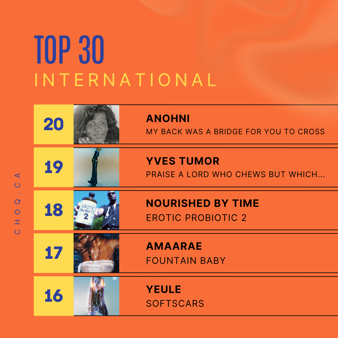 | 20 | ANOHNI | My Back Was a Bridge For You To Cross | Secretly Canadian | |