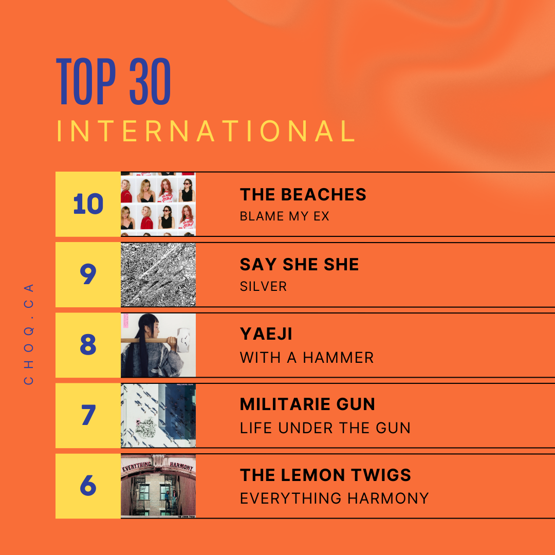 | 10 | The Beaches | Blame My Ex | AWAL Recordings | 🍁 |