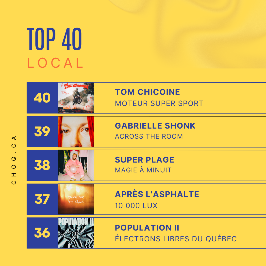 | 40 | Tom Chicoine | Moteur Super Sport | Audiogram |