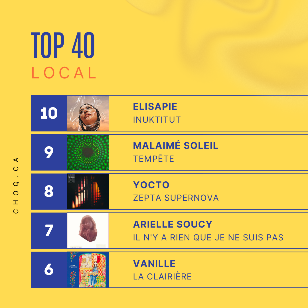 | 7 | Arielle Soucy | Il n'y a rien que je ne suis pas | Bonbonbon |
