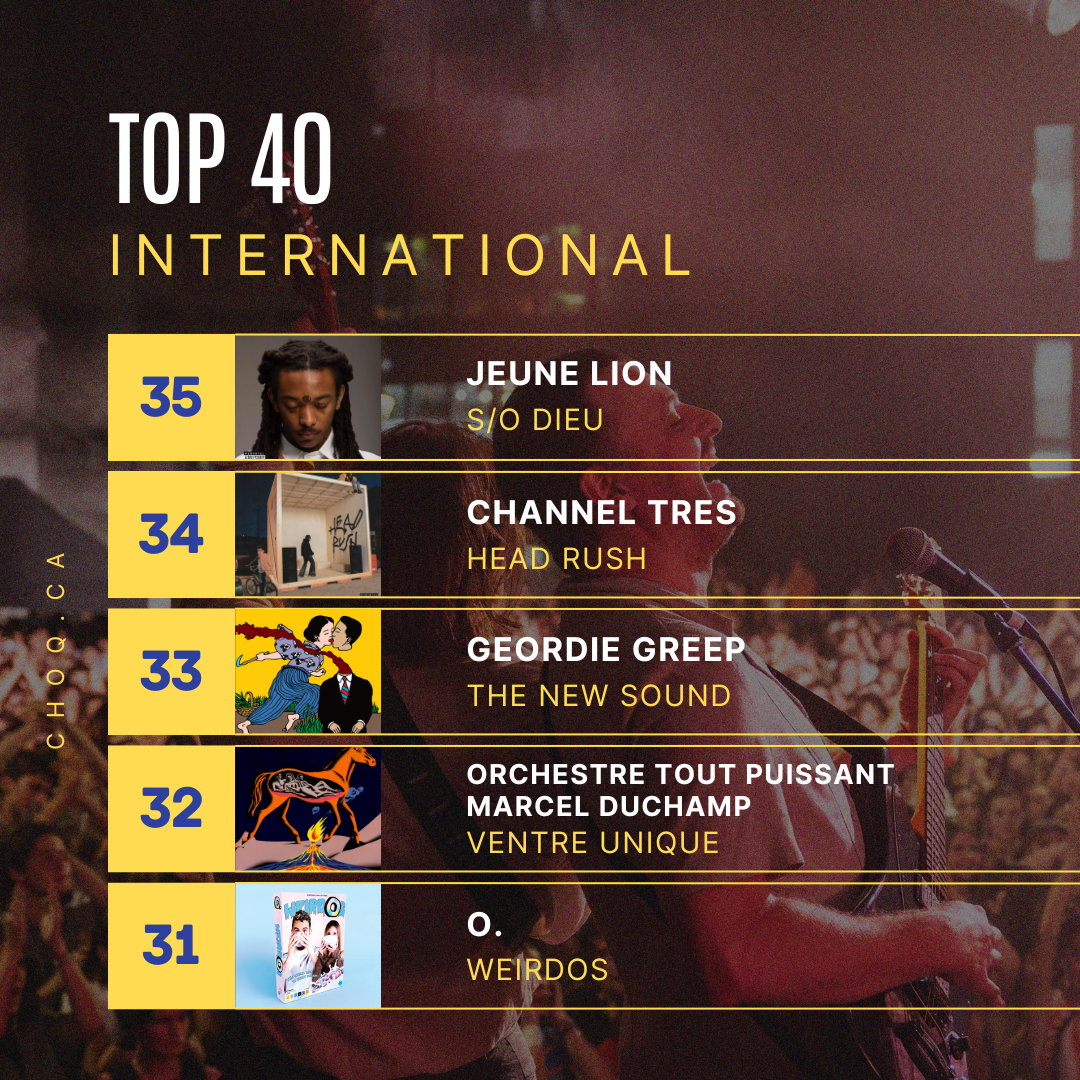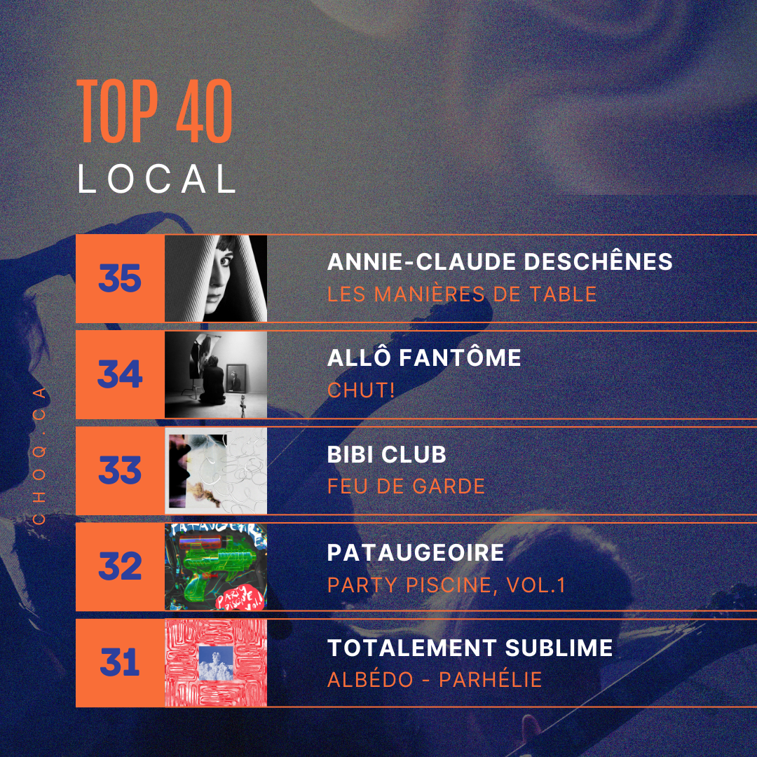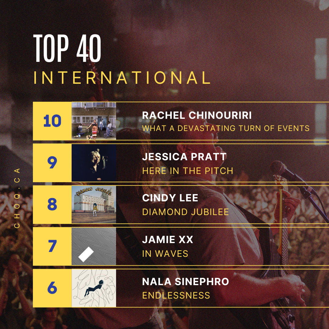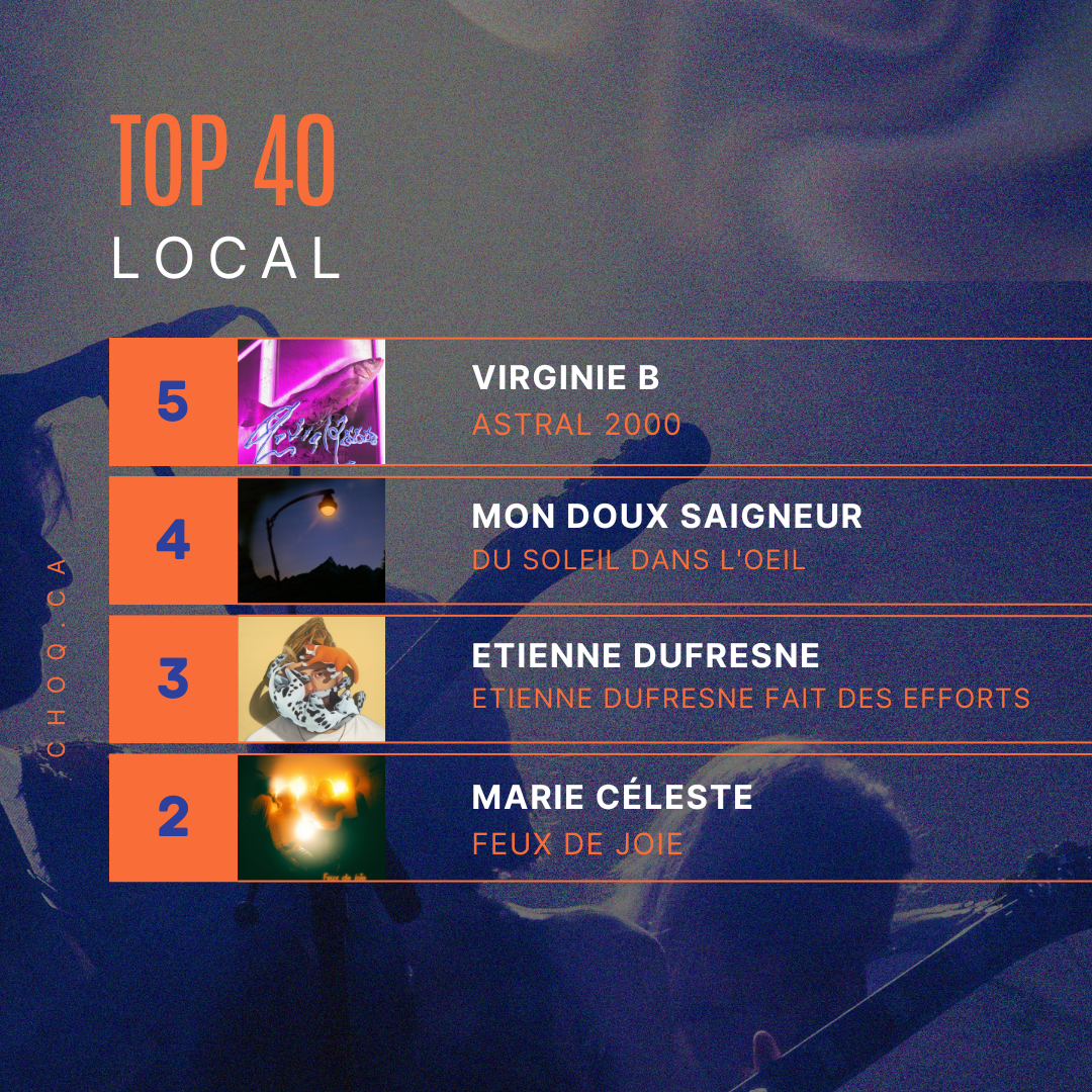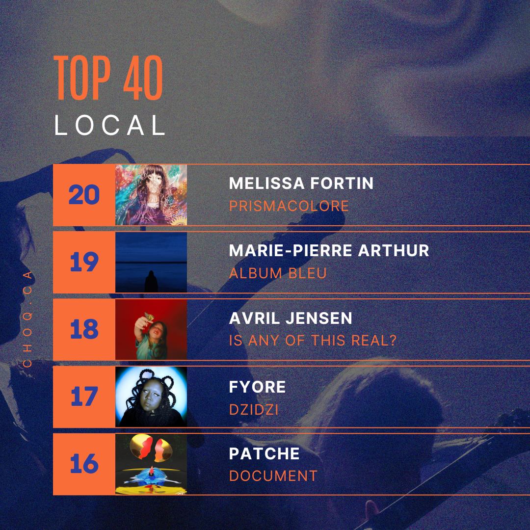 Voici donc, sans plus tarder, les résultats de nos palmarès de fin d'année. À noter que les visuels ont été créés par notre graphiste Alexandre Biguet à partir de photos prises par Luna Choquette Loranger lors de nos spectacles de la Grande Rentrée CHOQ en septembre dernier.
