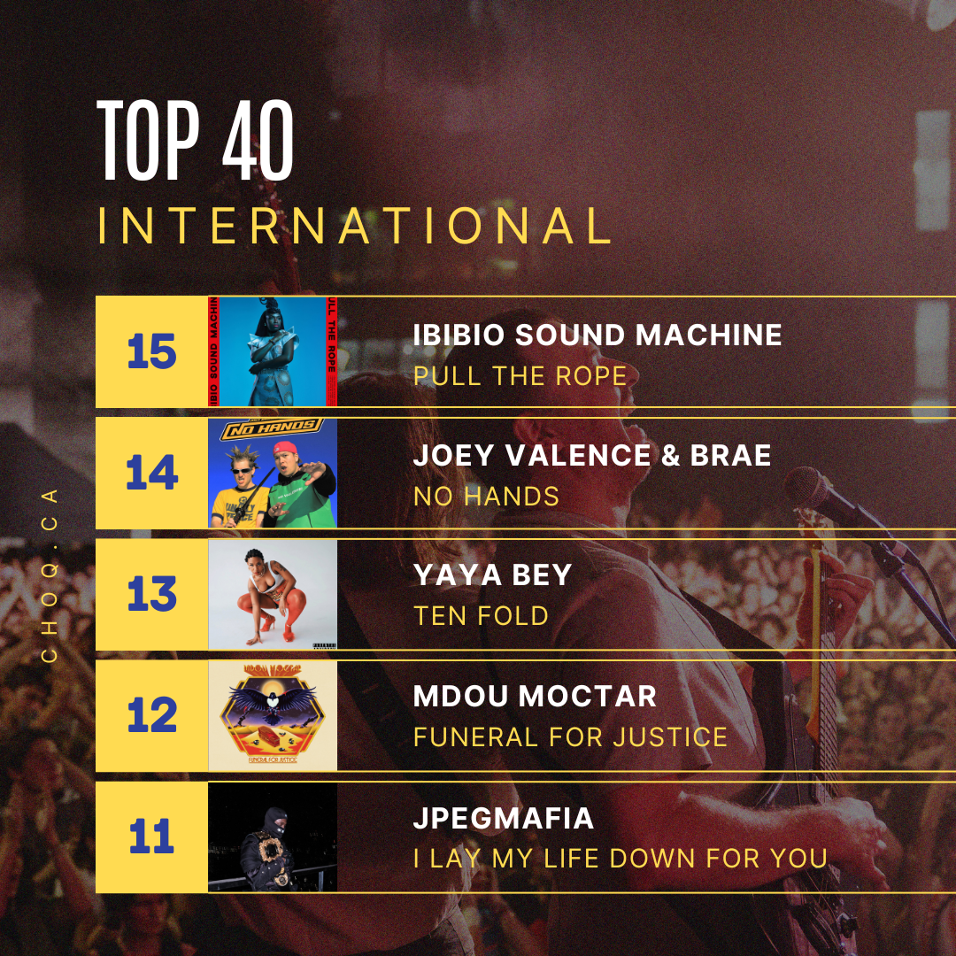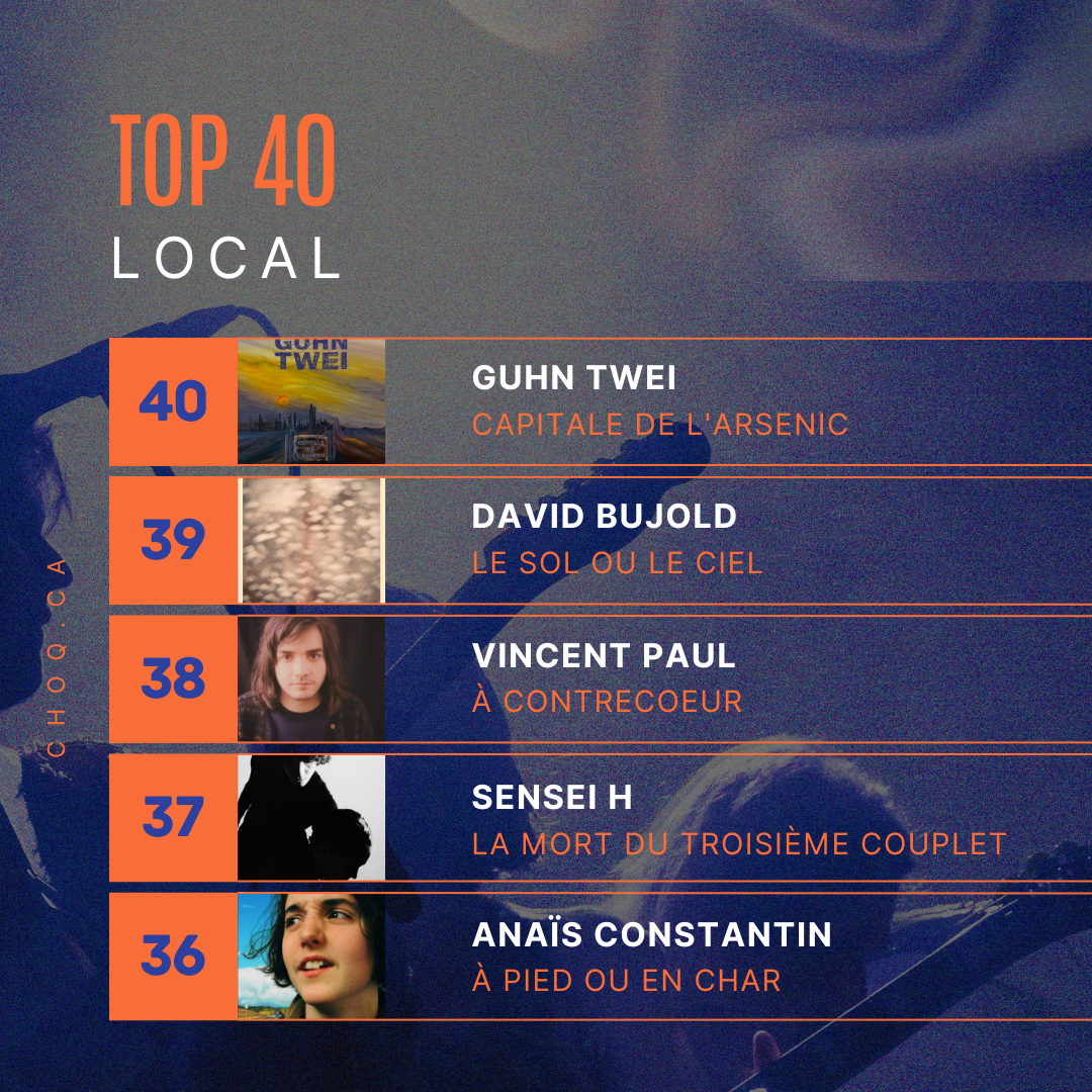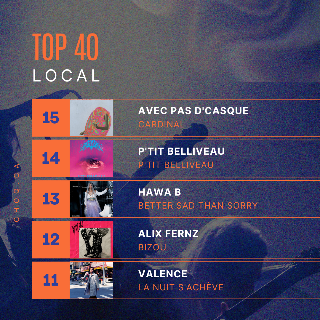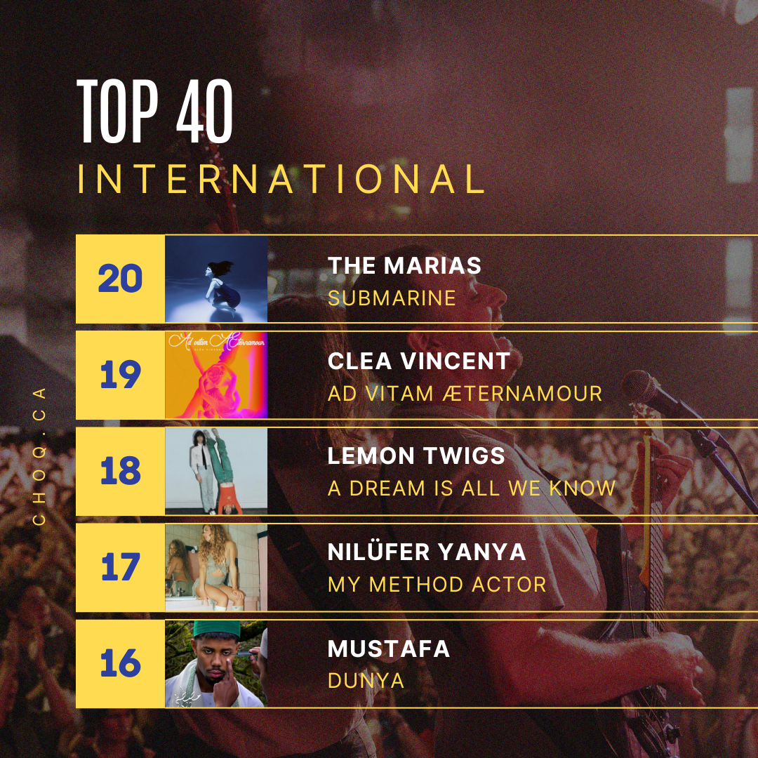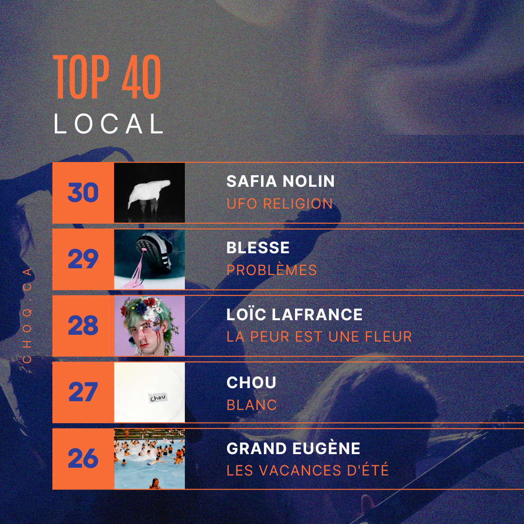 Voici donc, sans plus tarder, les résultats de nos palmarès de fin d'année. À noter que les visuels ont été créés par notre graphiste Alexandre Biguet à partir de photos prises par Luna Choquette Loranger lors de nos spectacles de la Grande Rentrée CHOQ en septembre dernier.