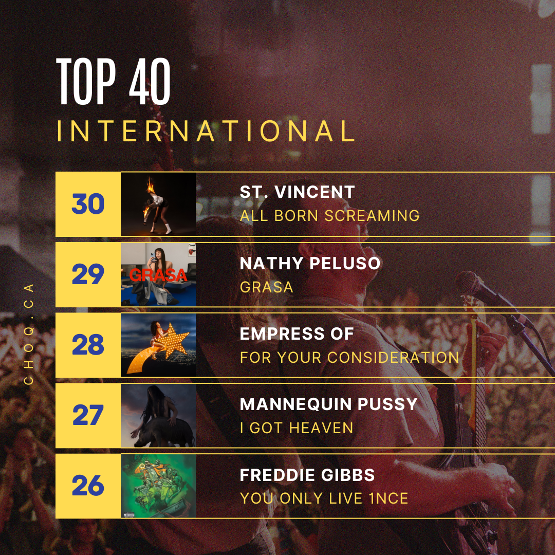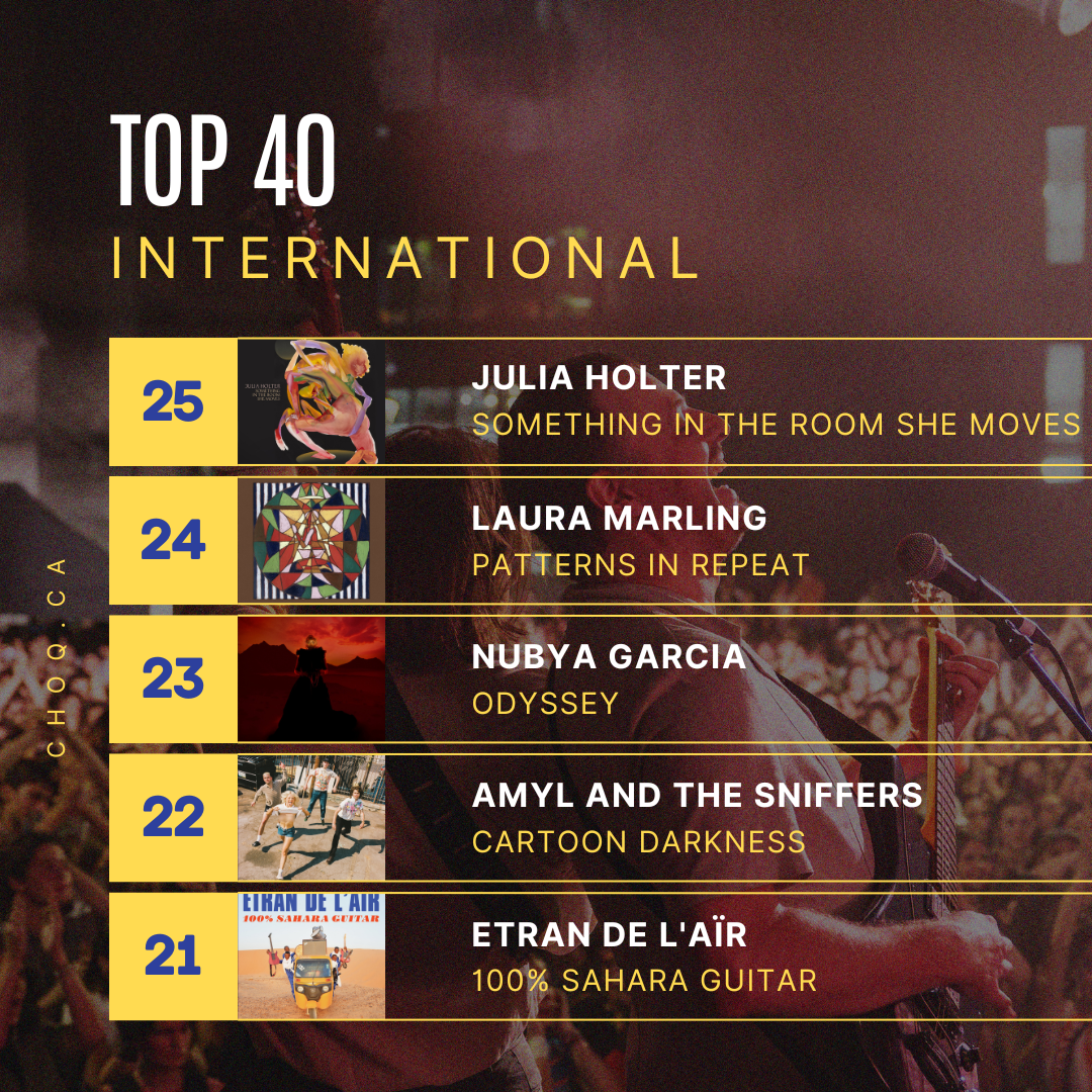 En 2024, ce sont 134 albums qui ont fait leur entrée au Palmarès local et 126 au Palmarès international. Il s'agit d'albums dans une multitude de langues et de styles, mais qui s'inscrivent toujours dans notre mission de faire découvrir la meilleure musique émergente d'ici et d'ailleurs.