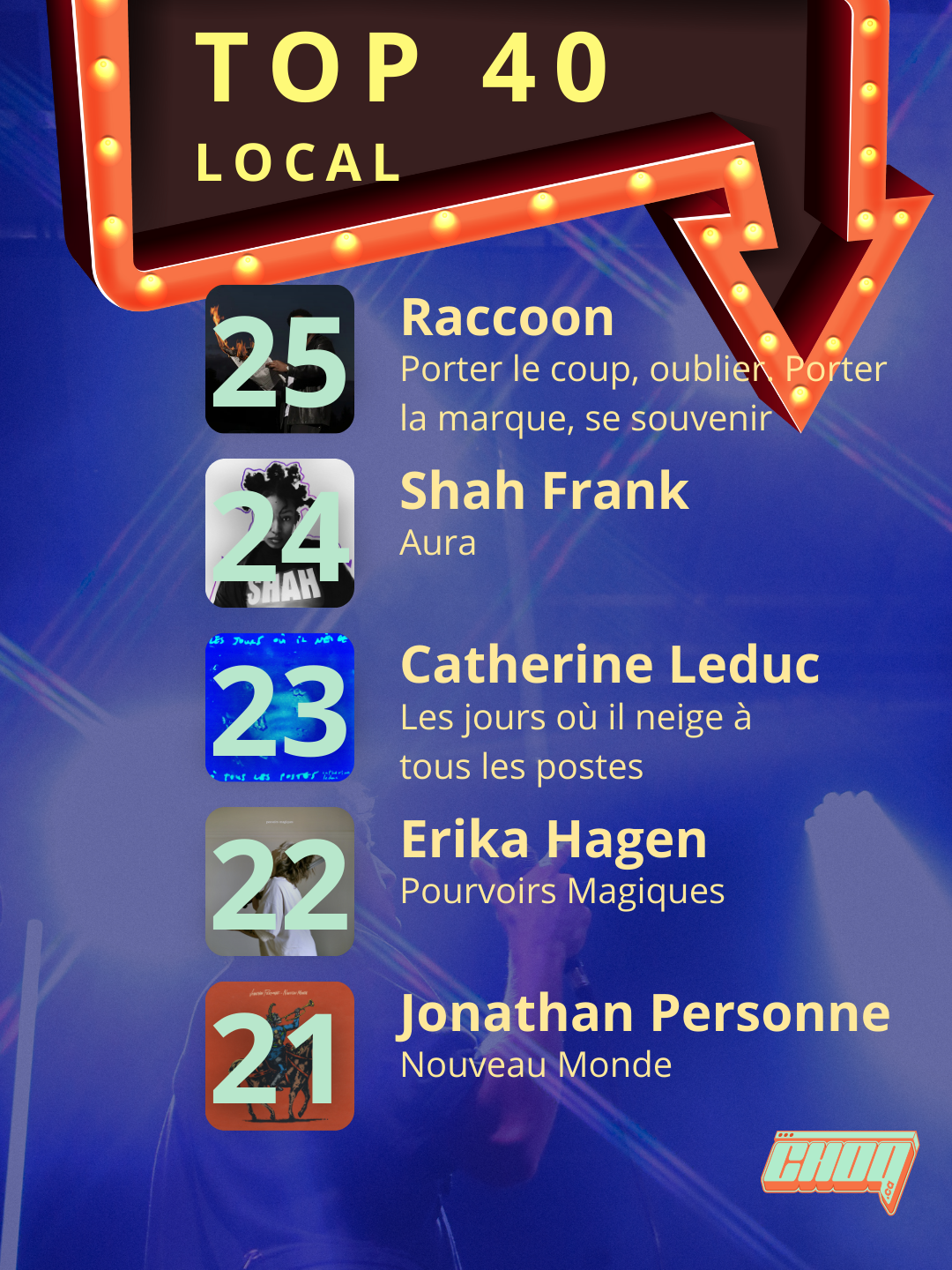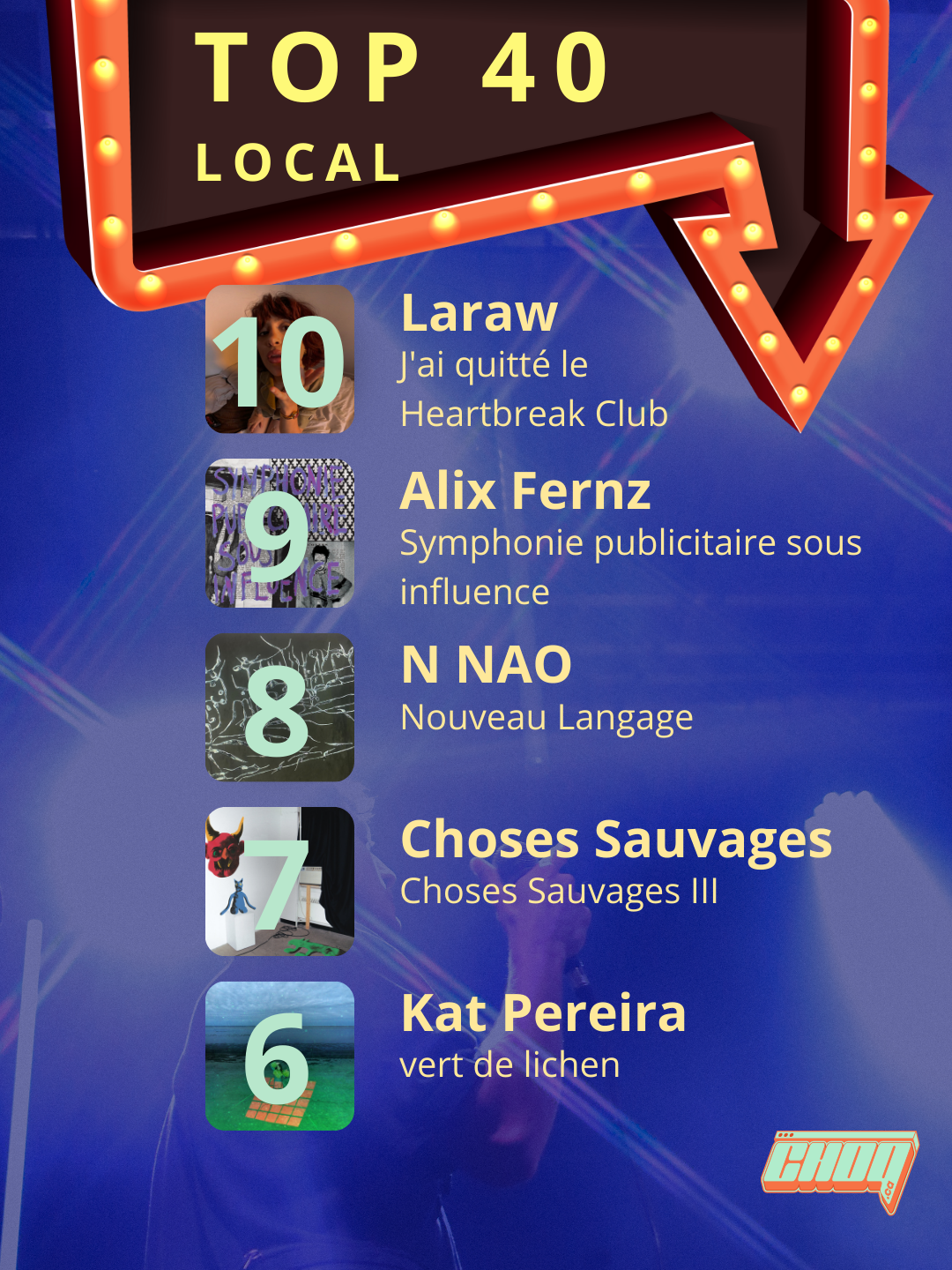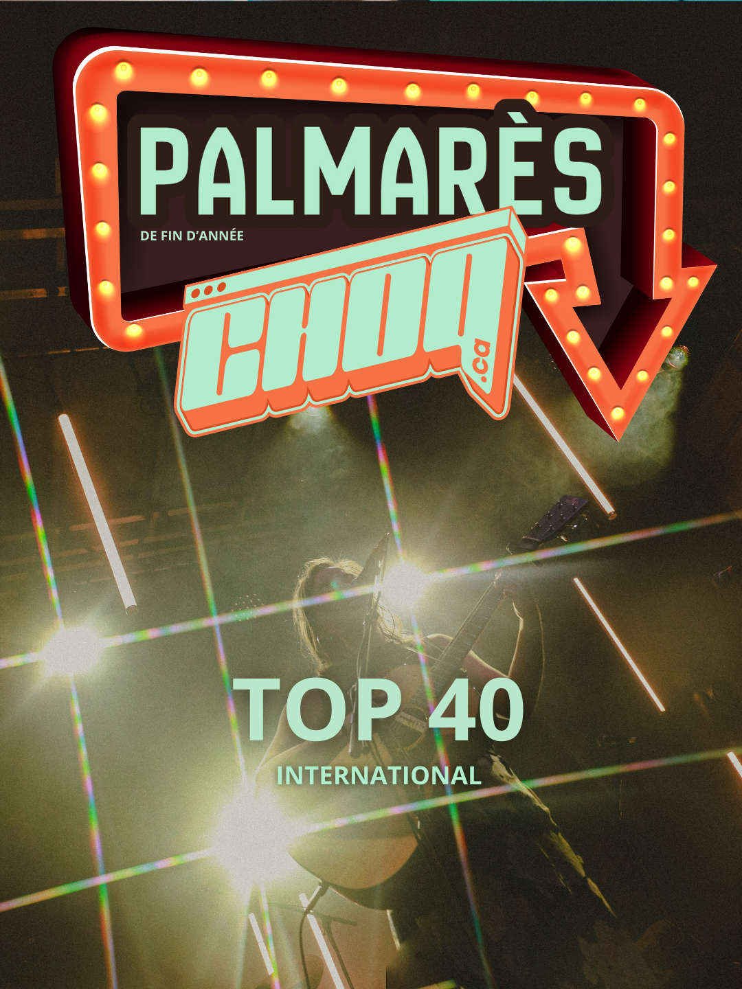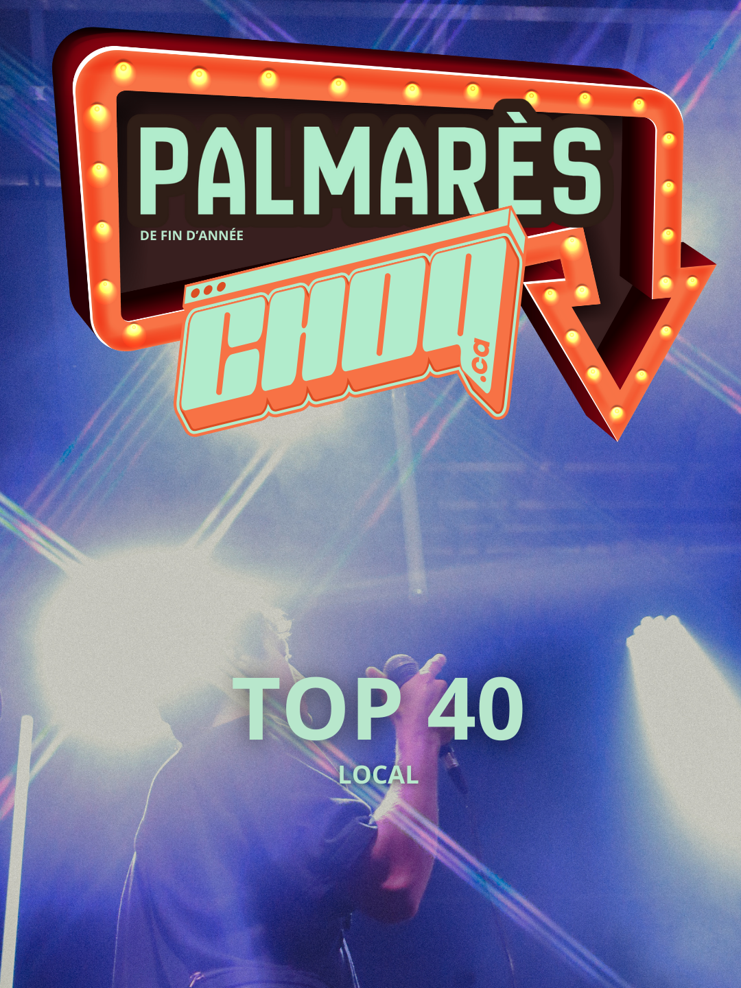 C'est déjà l'heure de dire au revoir à l'année 2025 au Palmarès de fin d'année de CHOQ.ca! Ici, vous trouverez les résultats du Top 40 des meilleurs albums locaux, du Top 40 des meilleurs albums internationaux et le Top 10 des chansons de l'année, tels que votés par l'équipe de CHOQ.ca et le public. En tout, ce sont plus de 200 bulletins de vote qui ont été comptabilisés pour cette édition. Les albums choisis vont du folk au hardcore, en passant par le hyperpop, le rap et la grosse pop bien assumée.